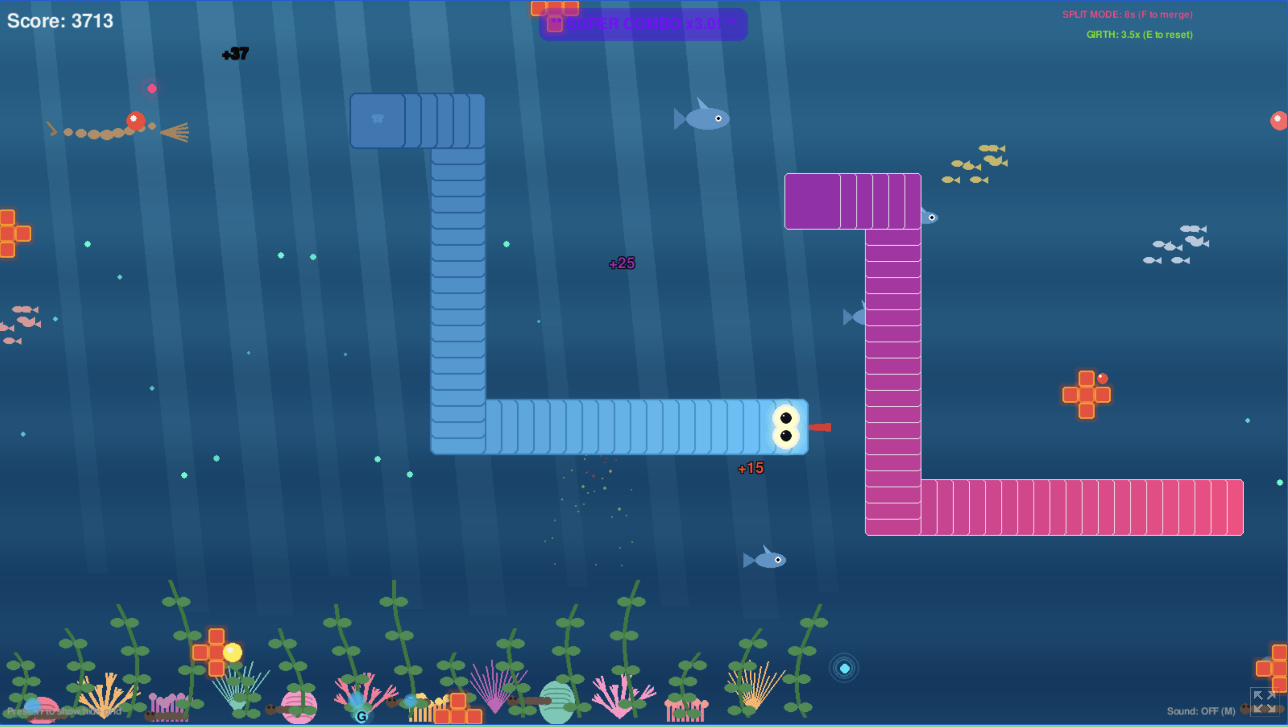 - Split: Divide your snake into two and keep eating with both simultaneously.